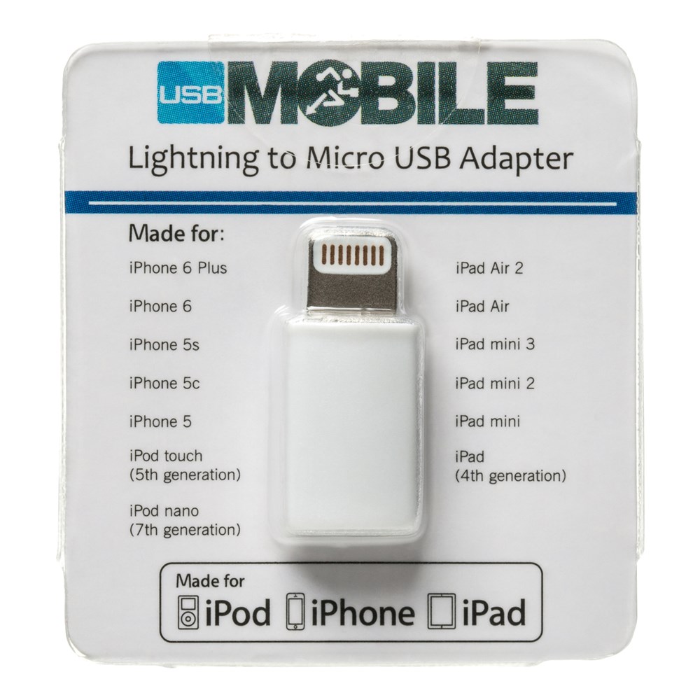 Laad uw apparaat op via deze micro-usb op Lightning®-adapter. Via deze adapter kunt u ook uw gegevens synchroniseren. Compatibel met alle apparaten met Lightning®-aansluiting zoals iPhone®, iPad®, iPod®.