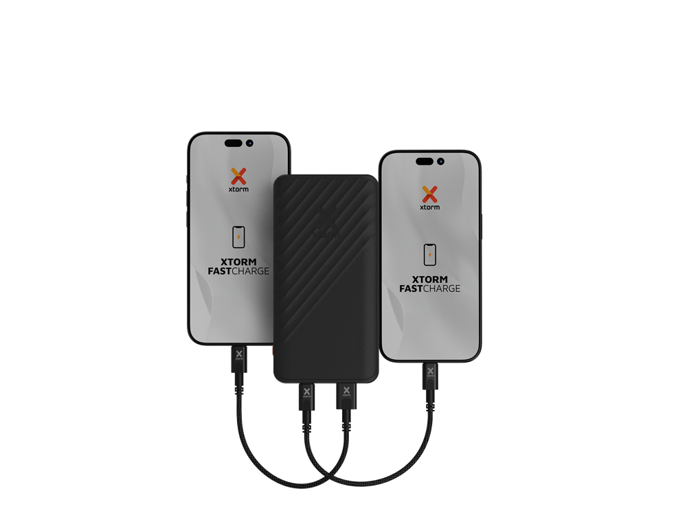 Charcoal Black: Deze kleur staat voor mysterie en elegantie. Het geeft je een gevoel van autoriteiten waardigheid. Het is een stijlvolle kleur die je gemakkelijk combineert met andere kleuren. FastCharge 2 apparaten tegelijkertijdDeze Go2 Powerbank geeft snel nieuwe energie aan 2 apparaten tegelijk met 15W FastCharge! Zorg voor de juiste kabels en laad via de USB-A of USB-C aansluiting jouw dagelijkse apparaten supersnel op! Ook de Powerbank zelf is binnen 1,5 uur weer volledig opgeladen en klaar voor gebruik. Dankzij de pass-through functie is het zelfs mogelijk om een apparaat snel op te laden terwijl de Powerbank zelf opgeladen wordt. Jouw Go2 Powerbank past in elke tasDoor het slanke en compacte ontwerp neem je deze Powerbank gemakkelijk overal mee naartoe. Stop ‘m simpelweg in je tas zodra je weet dat je die dag weinig of geen stopcontacten in de buurt hebt. Je kunt de hele dag zoveel foto’s of filmpjes maken als je maar wilt, zonder oplaadstress. Met deze Go2 Powerbank heb jij altijd snel extra energie bij de hand met Xtorm FastCharge!Compatibel met alle merkenDankzij de USB-A en USB-C aansluiting, is deze Go2 Powerbank geschikt voor zowel oudere als nieuwere apparaten. Met de juiste kabel laad je bijvoorbeeld supersnel elk type smartphone op. Of je nu een Oppo, OnePlus, iPhone, Samsung of Xiaomi hebt. Ook alle draadloze oordopjes, een drone of GoPro laad je op met deze Go2 FastCharge Powerbank! De LED lampjes laten je zien hoeveel extra energie de Powerbank nog te geven heeft. Je weet dus wanneer het tijd is om de Go2 weer op te laden. Verleng de levensduur van je telefoon!Door de 15W FastCharge zijn niet alleen jouw apparaten supersnel opgeladen. Deze functie verlengt ook de levensduur van de batterij van je telefoon. Snel-laden voorkomt oververhitting van de batterij, wat levensverlengend werkt. Daarnaast is het het beste om een apparaat met een interne batterij steeds zo snel en kort mogelijk op te laden. Jouw Go2 voor jarenlang #MoreEnergyDeze Go2 Powerbank met FastCharge en een capaciteit van 10.000mAh heeft een enorm goede prijs-kwaliteit verhouding. Door het gebruik van de nieuwste technologieën is deze Powerbank geschikt voor de huidige mobiele apparaten en ook voor de toekomstige versies. Goedkopere powerbanks zetten na verloop van tijd uit of laden niet meer zo snel op. Met de kwalitatief goede Xtorm Go2 Powerbank krijg je gegarandeerd jarenlang extra energie!De duurzame keuzeDe behuizing van deze Go2 Powerbank is 100% gemaakt van gerecycled plastic en voorzien van het wereldwijd erkende GRS-certificaat! Daarnaast is de verpakking bijna volledig gemaakt van gerecycled papier met het FSC-keurmerk. De uitzondering hierop is de kleine, 3 gram wegende, plastic haak. Deze is ook gemaakt van volledig gerecycled plastic en voorzien van het GRS-certificaat. Dit maakt de Go2 een betrouwbare en duurzame Powerbank waar je jarenlang plezier van hebt!Xtorm Supreme Guarantee