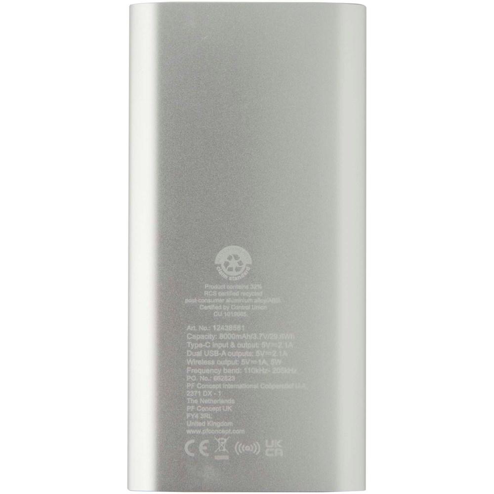 Juice type-C draadloze powerbank van 8000 mAh van gerecycled aluminium