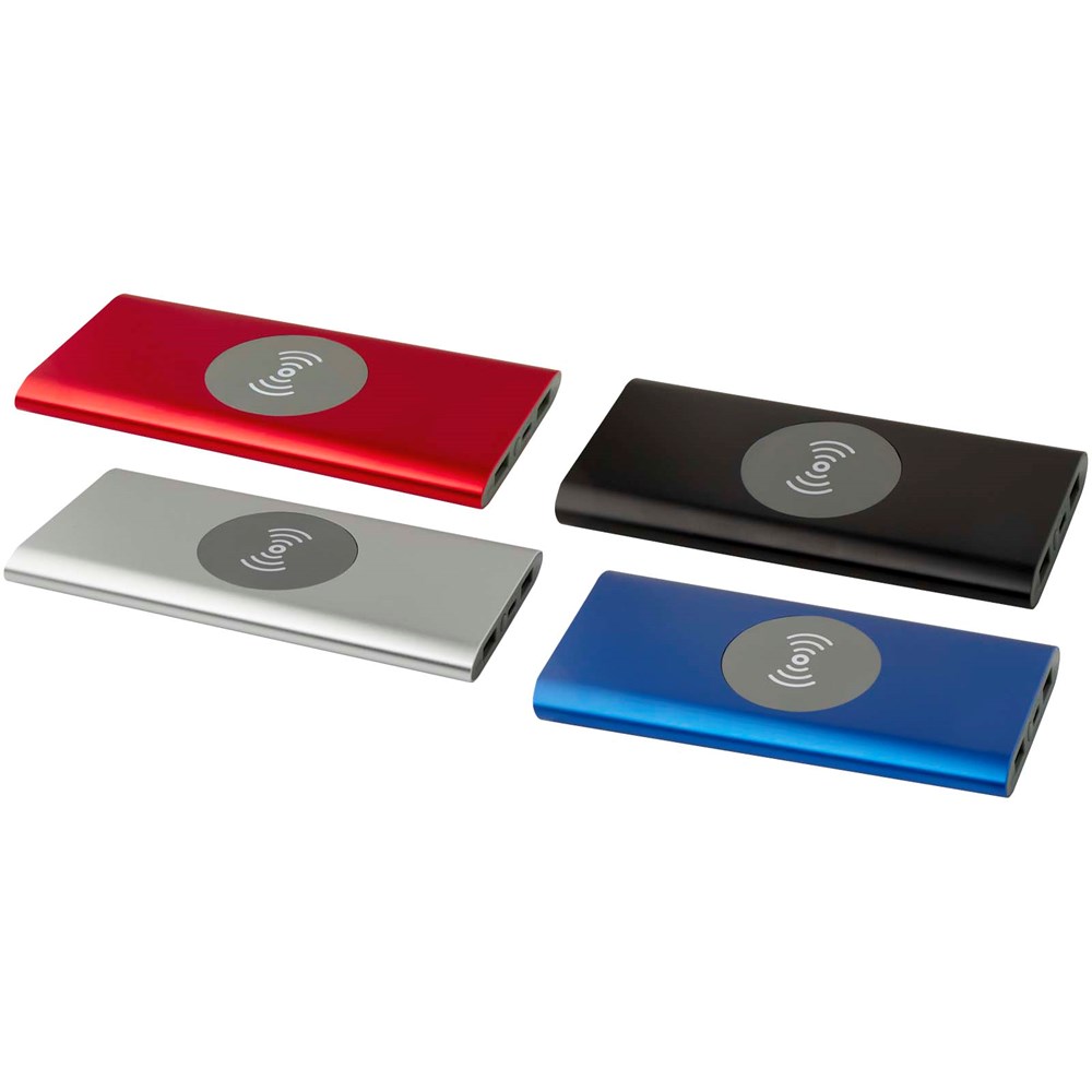 Powerbank met Type-C in/uitgangspoort en 2 x USB-A-poorten, wat betekent dat drie apparaten tegelijk kunnen worden opgeladen. Het ondersteunt ook 5 W draadloos opladen voor alle apparaten met Qi. De powerbank heeft een 8000 mAh lithium-polymeerbatterij die een totaal uitgangsvermogen levert van max. 10 W. Deze powerbank is gemaakt van 28% RCS gecertificeerd gerecycled plastic. Geleverd met een TPE Type-C naar USB-A-oplaadkabel.