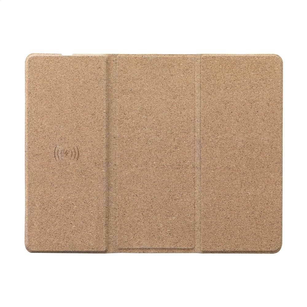 Multifunctionele, draadloze oplaadmuismat. Het exterieur van deze moderne muismat is gemaakt van kurk. Op deze kurken muismat kun je moeiteloos je muis navigeren en daarnaast kun je je smartphone opladen. Ook te gebruiken als telefoonstandaard. Compatibel met alle mobiele apparaten die QI draadloos laden ondersteunen (nieuwste generatie Android en iPhone). Input 9V/2A. Wireless output 5V/10W. Inclusief PVC-vrije kabel (TPE) met micro-USB aansluiting en gebruiksaanwijzing. Per stuk in kraft doos.