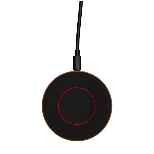 10W draadloos laadstation gemaakt van rubber, hout en een oplaadkabel van RPET. Kan worden gedecoreerd met een oplichtend logo. Geleverd in een zwarte geschenkverpakking van kraftpapier met magnetische sluiting. Patent EUROPE EUIPO.