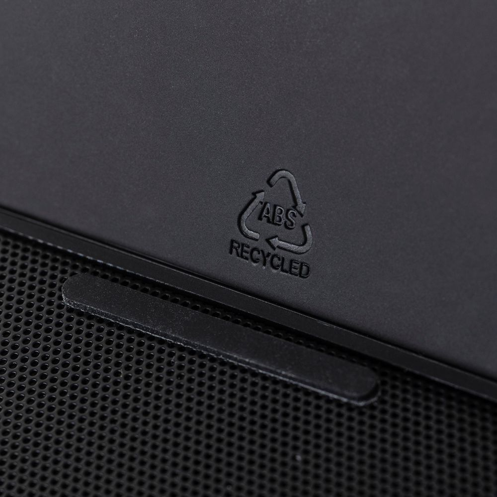 Gerecycleerd ABS 3-in-1 draadloze oplader, luidspreker en telefoonhouder in een kubusvormig...meer